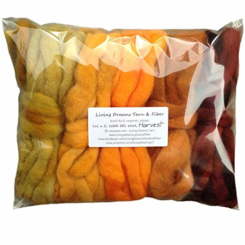 SPINNING FIBER Super soft BFL Wool Top Roving drafted for hand spinning with drop spindle or wheel, felting, blending and weaving. Variegated hand dyed mini skeins. 5 Ounce DISCOUNT PACK, Harvest