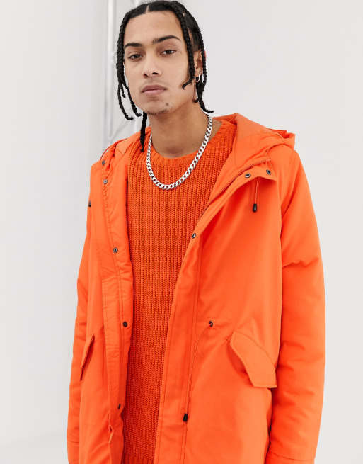 ASOS DESIGN parka jacket in bright orange