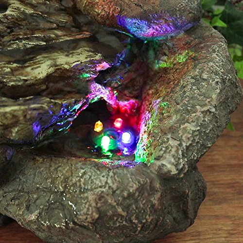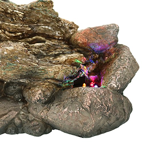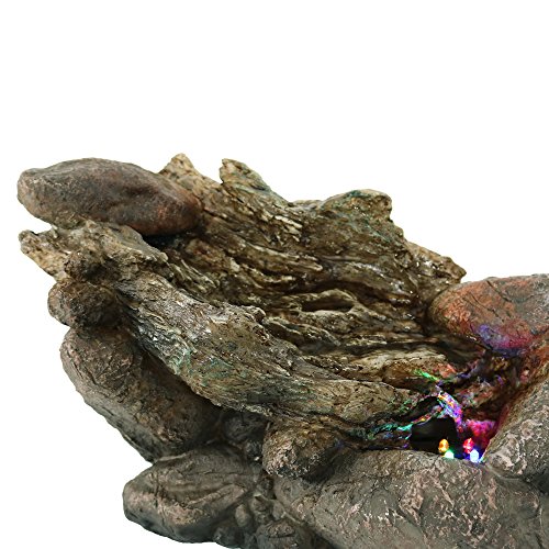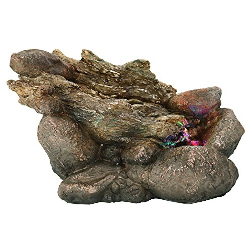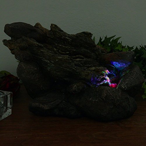 - Nature-inspired tabletop indoor water fountainThis durable resin fountain is carved to look like a real log and stone. The soothing sounds it creates will have you relaxing in no time! Bring the outdoors in with this stunning fountain. The electric pump enables the gently flowing water to flow from the top tier all the way down to the bottom pool where it then recirculates back through the fountain. The Log and Stone Tabletop Fountain features padded feet, natural coloring and an LED light.