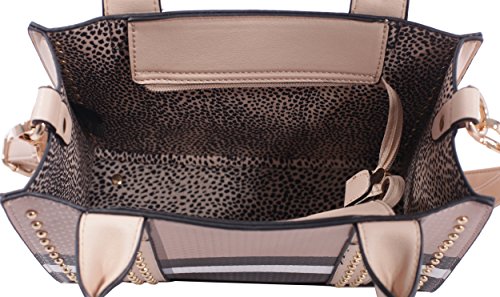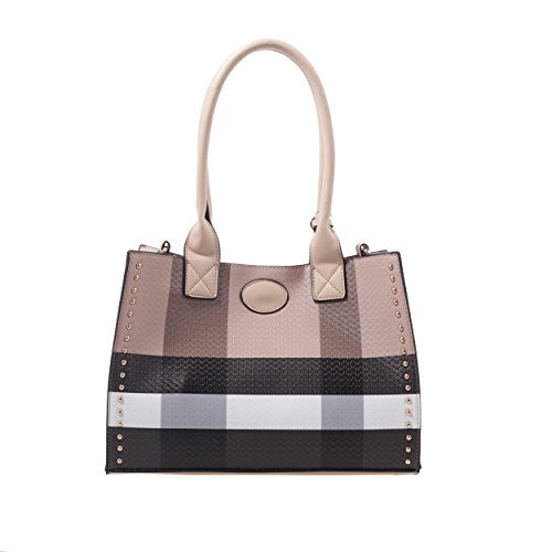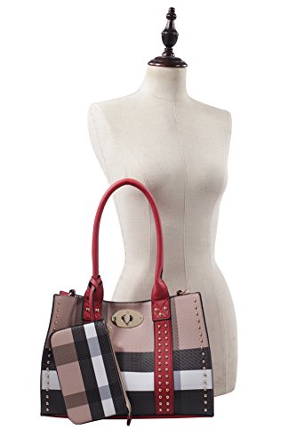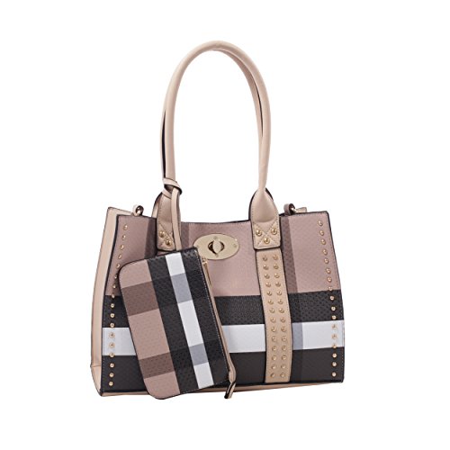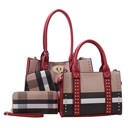 -. Title : Dana Plaid Studded Satchel Bag with Matching Satchel, Clutch, & Wallet - 4 Piece Set