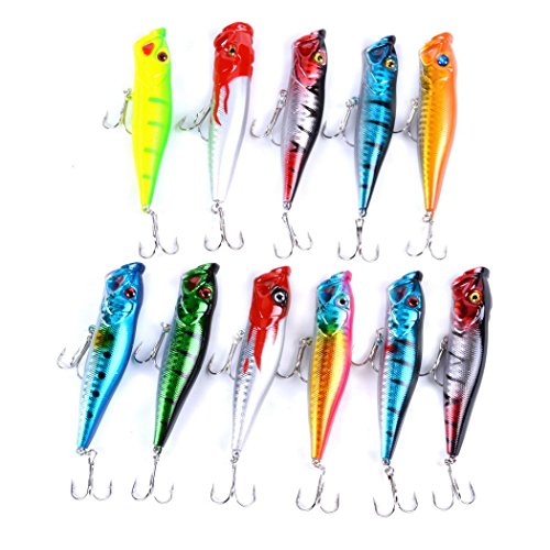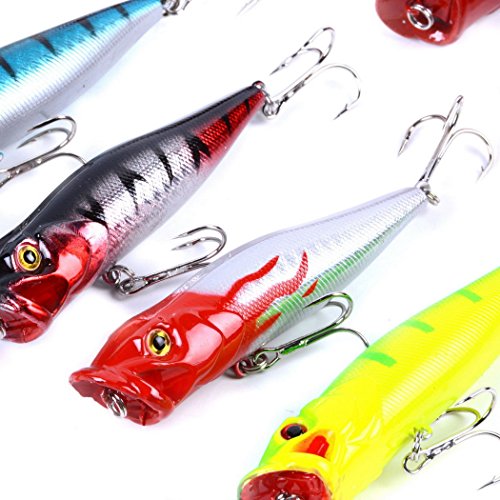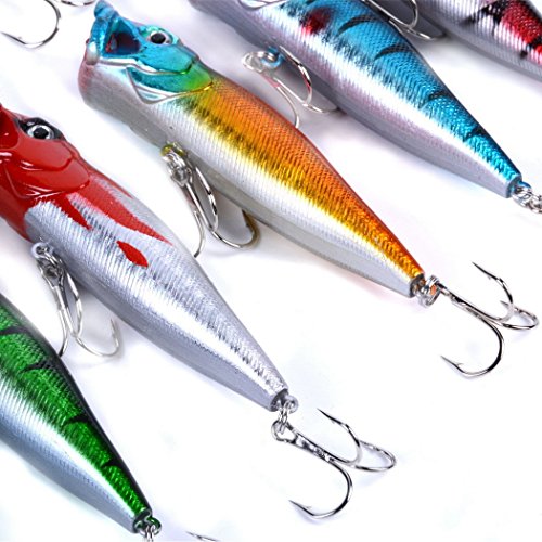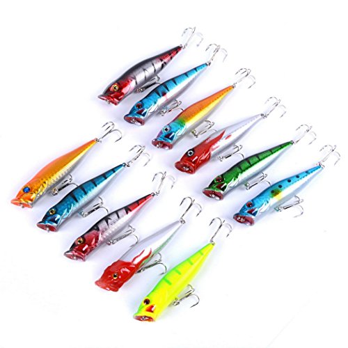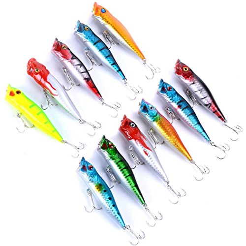 -. Feature : Including: 6 pcs Popper Bait(A),5 pcs Popper Bait(B) / Minnow and Crank Baits-Wonderful Lures Combination Targeting for Widely Fishes In Different Waters / Our fishing lure set is composed of high quality components for superior performance in the water / 3D eyes&Bright colors make it a powerful catching tool. / Perfect for ocean boat fishing,ocean rock fishing,ocean beach fishing,lake,river,reservion,pond and stream!Both for freshwater and saltwater Great for Bass, Perch, Panfish,Perch,Trout,even pike and salmon!This kit is best gift for your friends and families