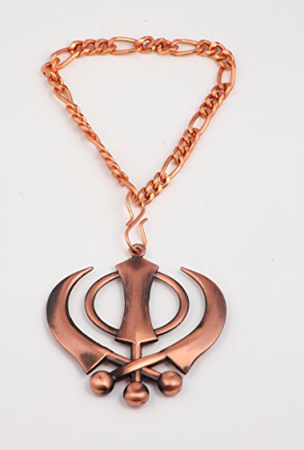 Galaxy Karmaa Bronze Color Khanda For Car Rear Mirror With Chain Medium