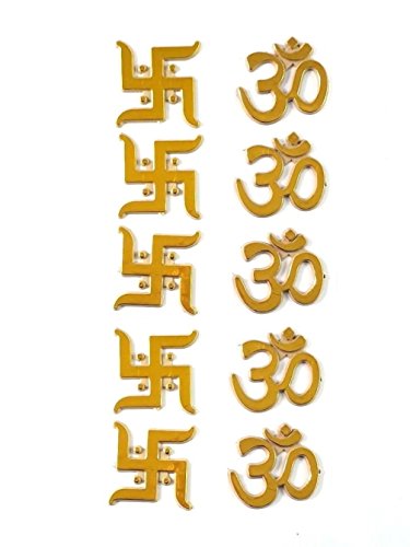 - 5 Pcs Gold Om and Swastika Sticker Double sided tape To stick for Diwali/ Deepawali Gift Handmade traditional Yoga Meditation