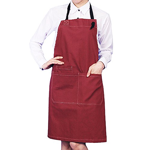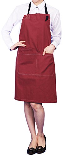 Aprons for Women with Pockets Light Red Neck Adjustable Tie Standard Size Apron Men Cooking Kitchen Bib Chef Works Apron Water Resistant (Red)