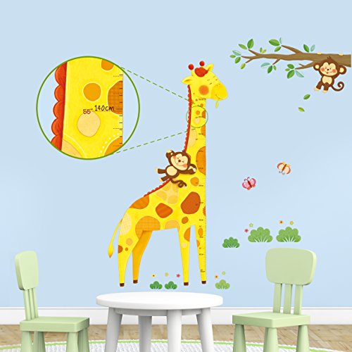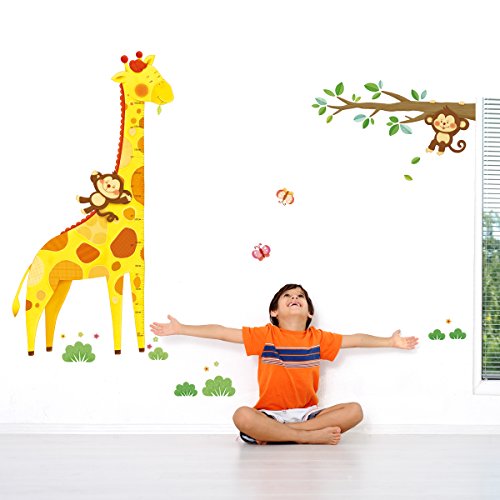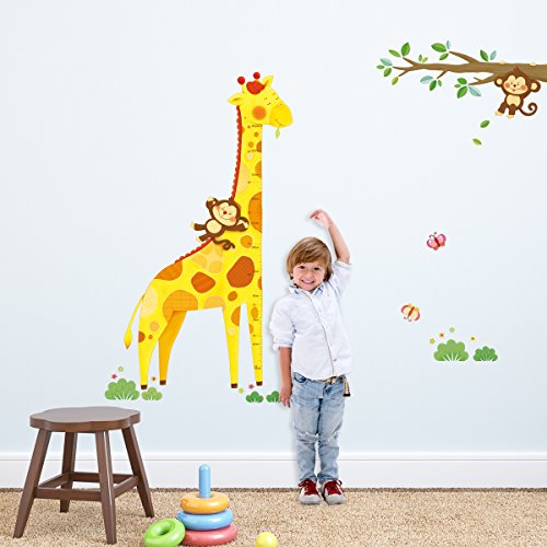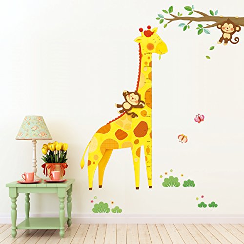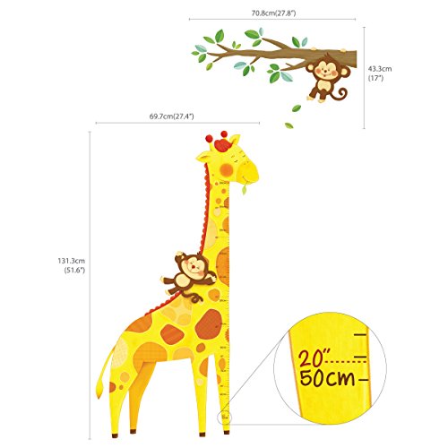 Decowall DM-1511 Giraffe Height Chart Kids Wall Decals Wall Stickers Peel and Stick Removable Wall Stickers for Kids Nursery Bedroom Living Room
