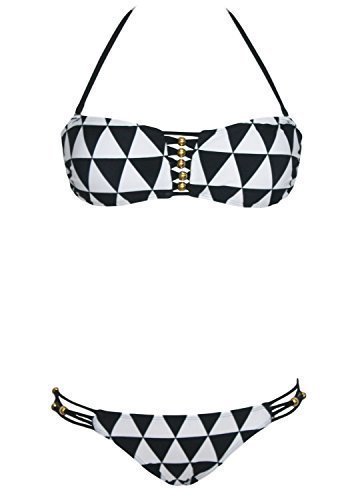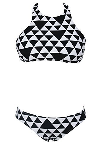 Cfanny - Damen Bikini Sexy Costa Maya Hoher Kragen Volle Abdeckung Neonpren - Schwarz Weiß, M