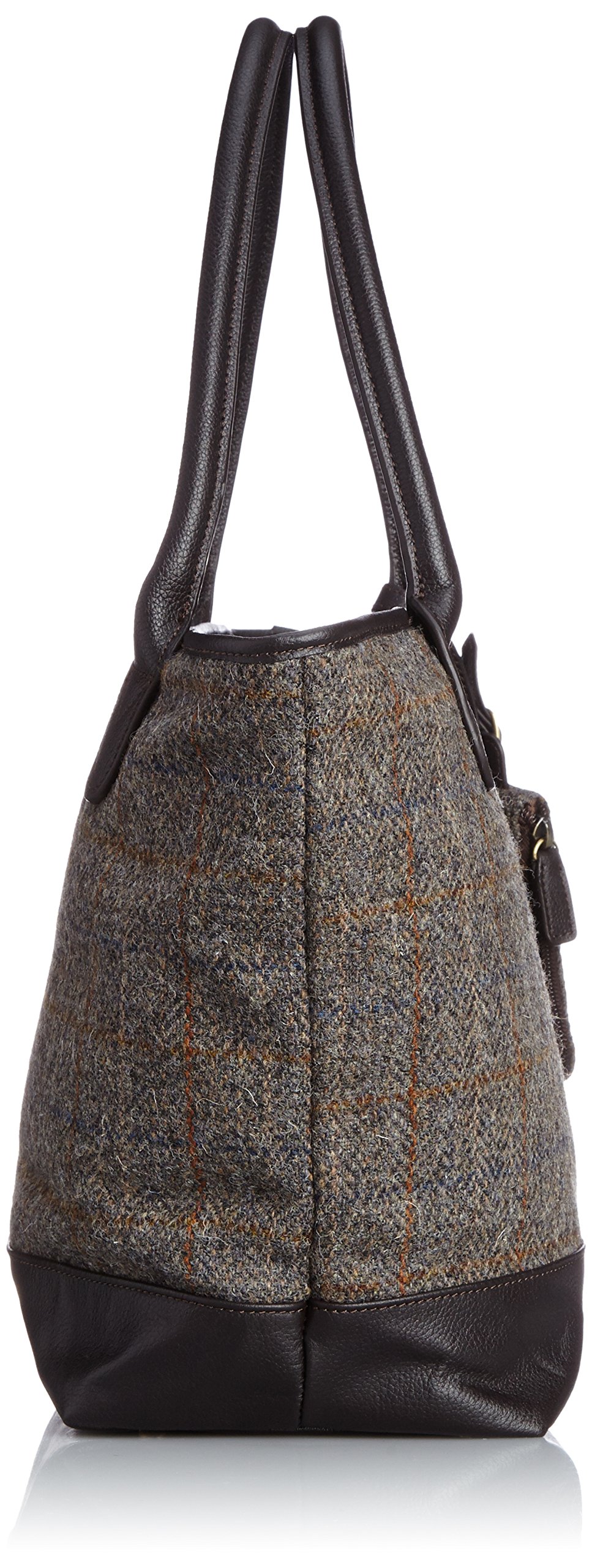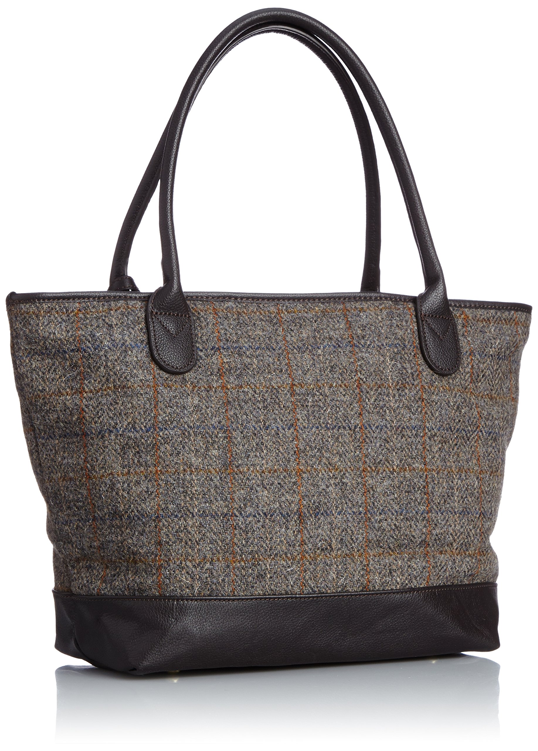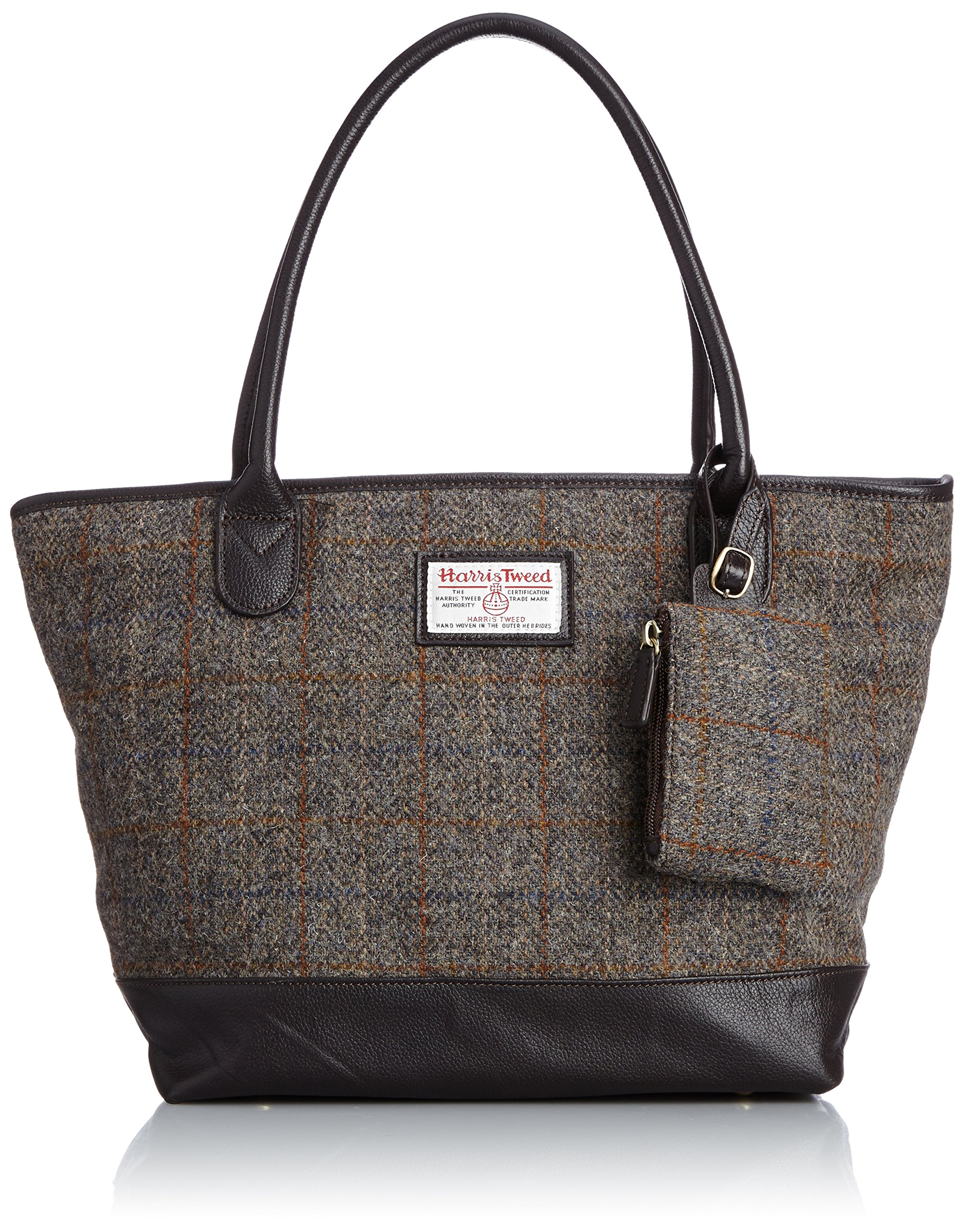 Traditional Harris tweed fabric and horse leather used under piping part and bag are harmoniously well balanced.