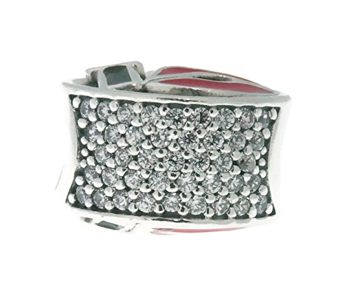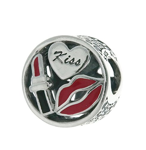 -. Title : PANDORA Charm in Sterling Silver with Engraving "Kiss", Red and Black Enamel and Clear Cubic Zirconia - 796324ENMX