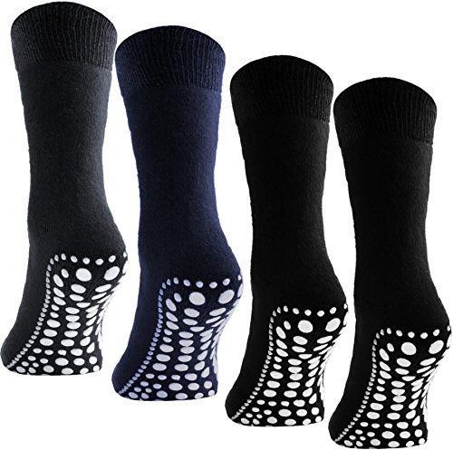 -. Binding : Apparel -. Brand : BRUBAKER -. Department : mens -. Feature : Great Hygienic Solution for Travel, Sports and Lounging / Perfect for hospital use, traveling, studio and home use / Material: 80% Cotton, 17% Polyamide, 3% Elastane, machine washable / xtremely soft and cozy due to frottee loop on the inside / Imported from Germany! -. Model : 4x_HomeSock_Srs -. ProductGroup : Apparel -. ProductTypeName : SOCKSHOSIERY -. Title : BRUBAKER 4 Pairs Slip Resistant Non Skid Soles Socks Sizes: US 4 - 11.5