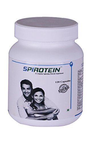 -. Binding : Health and Beauty -. Brand : SPIROTEIN -. EAN : 8905694512247 -. Feature : Natures Own Healthiest Green Superfood for our Daily Nutritional Needs. / Spirulina is one of the most nutrient dense foods on the planet containing over 100 nutrients. It has been found to have more antioxidant activity than 5 servings of fruits & vegetables, 2300% More Iron than Spinach, 3900% More Beta-Carotene than Carrots, 375% more Protein than Tofu and 31 times more Phytonutrients than blueberries. / Supports Total Body Health & Cellular Health. / Contains upto 15% Phycocyanin - a Powerful antioxidant. -. IsAdultProduct : 0 -. Label : Shibin Exports -. Manufacturer : Shibin Exports -. MPN : SPC120 -. PackageQuantity : 1 -. PartNumber : SPC120 -. ProductGroup : Health and Beauty -. ProductTypeName : HEALTH_PERSONAL_CARE -. Publisher : Shibin Exports -. Studio : Shibin Exports -. Title : Spirotein Natural Spirulina Capsules - 120 Capsules