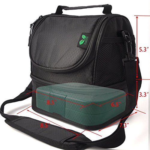 Larger Capacity: One Bento Lunch Box for kid to hold (8.5 x 7.3 x 8.6 inches) With handle strap and adjustable shoulder strap.