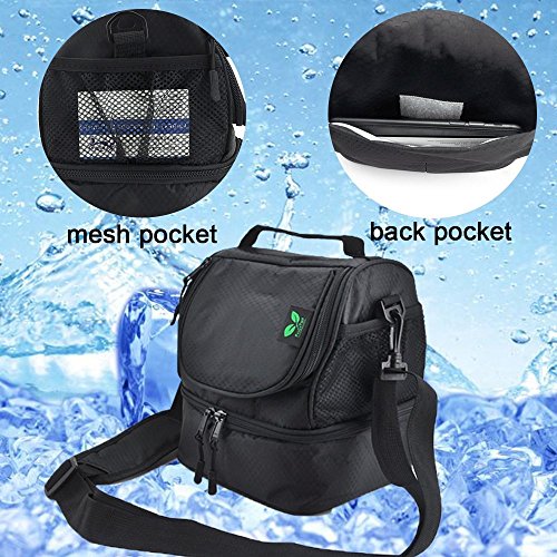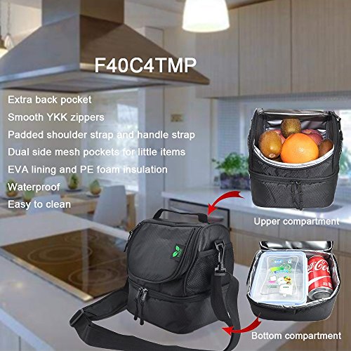 F40C4TMP Insulated Lunch Box Bag Soft Cooler Tote Bag With Pocket,Shoulder Strap Black