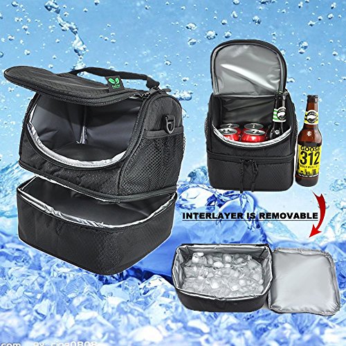 Two compartments and interlayer is removable.can carry large and tall items too. Has different storage compartments and can carry hot and cold food together.