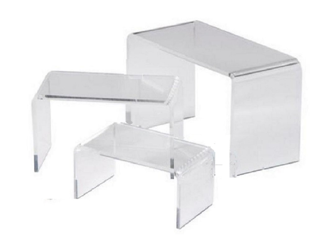 高さの違う「コの字型」のアクリル樹脂製ディスプレイ3点セット。アイディア次第で、様々な使い方が出来ます。 ・ご自宅で収集した趣味のコレクションの陳列 ・お店で商品のディスプレイ台として ・フリマアプリ・オークションの撮影小物として ・見せる収納の台として ・倒して配置することで棚の仕切り などにも活用できます。 ほかにも様々な活用法を見つけて下さい。 透明ですので、陳列するモノのイメージを壊さず、自然な見せ方が可能です。高さが違うものが3種類セットになっておりますので、乗せるモノの大きさや場所に応じて柔軟にお使い頂けます。 コの字型のディスプレイは、それぞれがバラバラになっています。一つの商品で使用するだけでなく、大きさの異なる商品を組み合わせることで、何通りにもご活用頂けます。 本商品は、標準的な幅のセットと幅のひろめのセットの2種類をご用意しております。それぞれ奥行きが同じで、幅と高さが異なる3つの商品で構成されています。必要に応じてお選び下さい。※本商品を初めてご使用になるときは、輸送時のキズを防止するための半透明の保護シートを取り外してご使用ください。サイズ(セットA):L・20×10×10cm M・16×10×7.5cm S・12×10×5cm (セットB)L・23x7.5x11.5cm M・22x7.5x7.5㎝ S・21x7.5x4.5㎝ 3個セット。