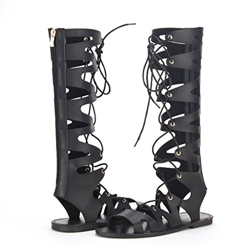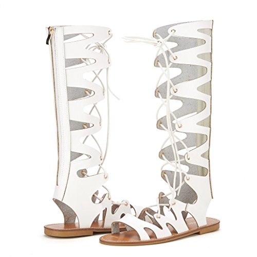 | (DREAM PAIRS)/Women's/Sandals/DIRECT FROM USA/DREAM PAIRS FIERCE Women's s trappy Gladiator Open Toe Lace Up Knee High Flat Sandals |