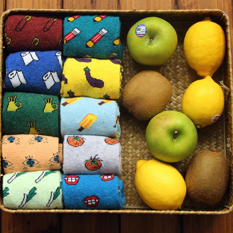 Material: Rabbit wool cotton Season: Spring Autumn Winter Pattern: Finger shallot Icicle Popsicle eggplant tomato pencil pin Socks Pattern: OK pineapple watermelon banana eye Rolls mouth kiss tooth