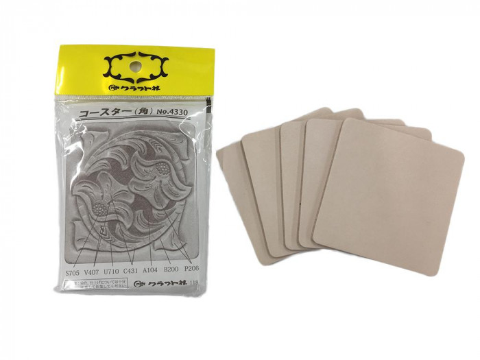 スタンピング・カービング・染色などが自由にできます。 製造国:日本 素材・材質:革 商品サイズ:できあがりサイズ:8×8cm セット内容:コースター×5、図説 ※サプライヤー直送品 ご注文後3~4営業日後の出荷となります【商品名】クラフト社 コースター 角 8×8cm 5枚入 4330