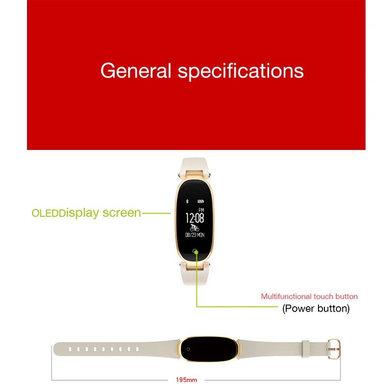 Function:Passometer,Sleep Tracker,Heart Rate Tracker,Alarm Clock,Remote Control,Call Reminder