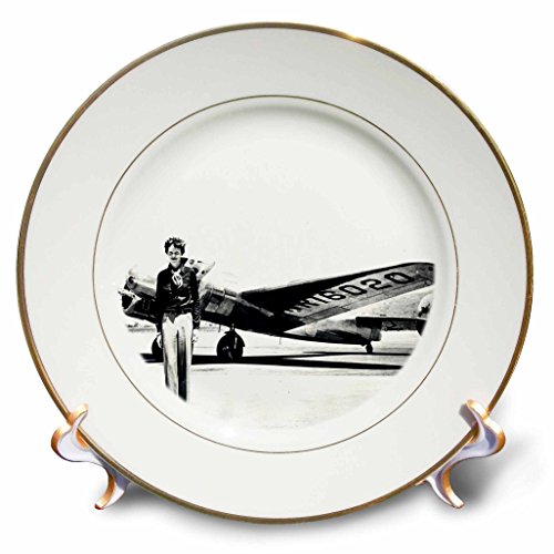 3dRose cp_62531_1 Old Photo of Amelia Earhart with Lockheed Electra Model 10 Porcelain Plate, 8-Inch