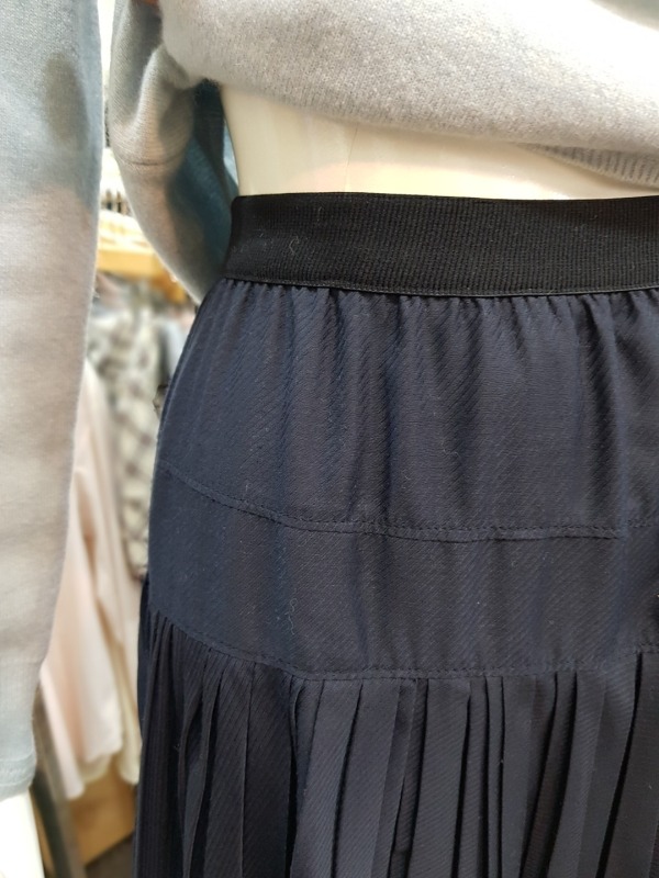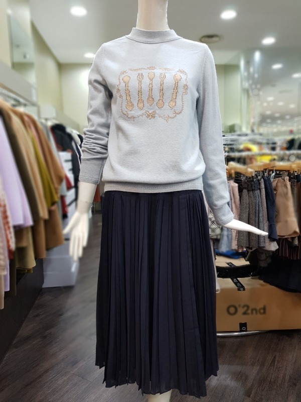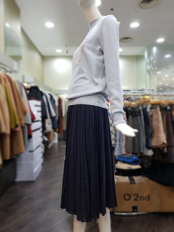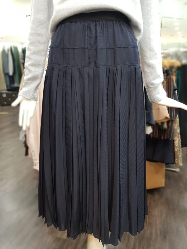 전면의 플리츠 디테일이 돋보이는 스커트로 허리밴딩이 있어 착용감이 편안하며 탈착장이 편리합니다.