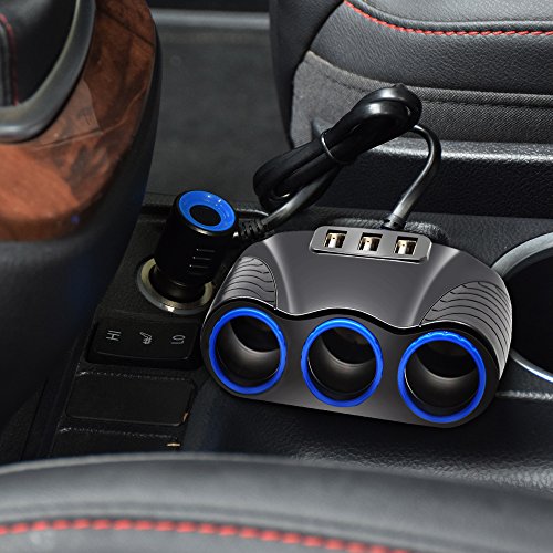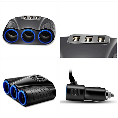 Taotuo 3-Socket Car Cigarette Lighter Power Adapter DC Outlet Splitter 3.1A 3 USB Car Charger for iPhone6s/6/7/6 Plus,iPad, Android Smart Phones and Tablets