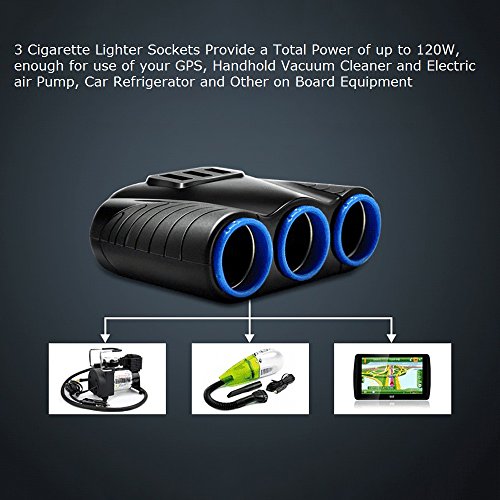 ►3 CIGARETTE LIGHTER SOCKETS Provide a Total Power of up to 120W, enough for use of your GPS, Handhold Vacuum Cleaner and Electric air Pump, Car Refrigerator and Other on Board Equipment