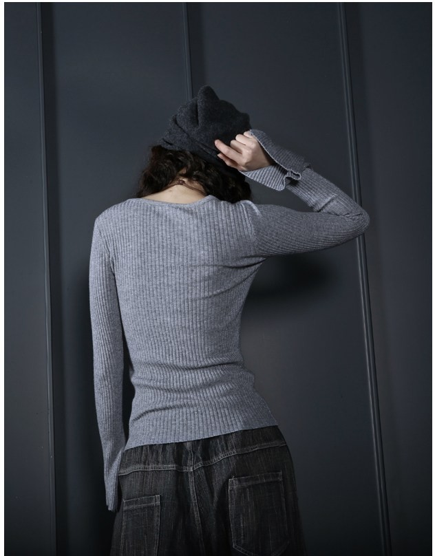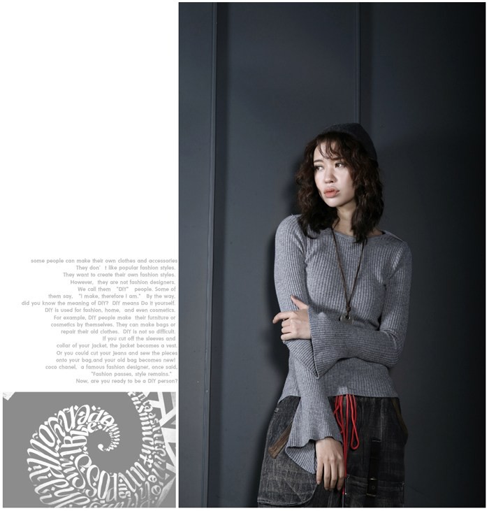 商品名:ニット レディース トップス Tシャツ 無地 長袖 秋 2017 モード系 個性的 40代 ファッション