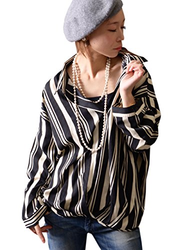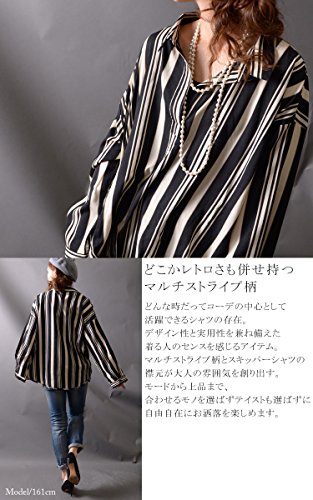 -. Title : (Goldjapan)ゴールドジャパン 大きいサイズ レディース おおきいシャツ ブラウス 長袖 長袖シャツ シャツトップス スキッパーシャツ 裾タックシャツ ストライプ
