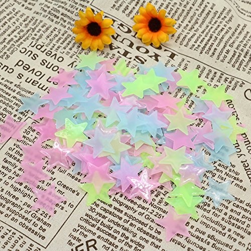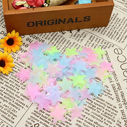 IDS 200 Pcs Colorful Glow In the Dark Stars Wall Stickers Decal for Kids Baby Rooms Fluorescent Sticker 3cm