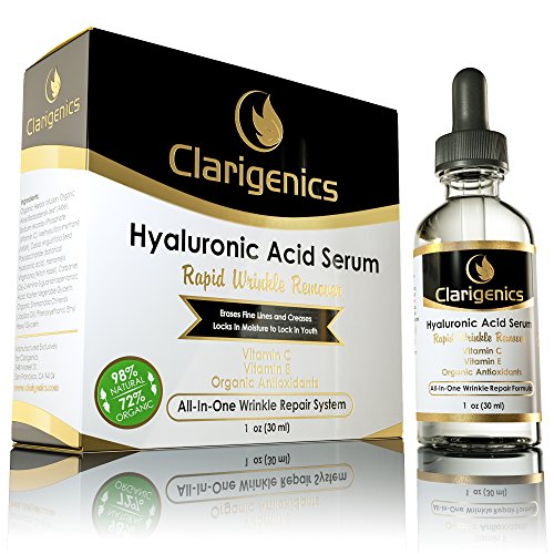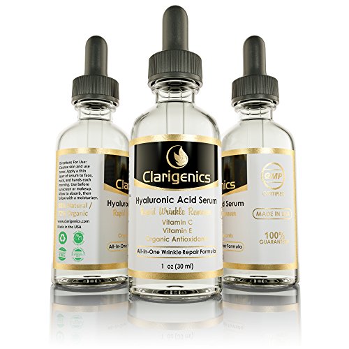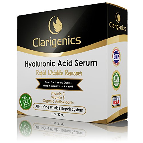 98% NATURAL AND 72% ORGANIC - Our best anti wrinkle serum is a hypoallergenic blend of rejuvenating ingredients that infuse the skin with a vegan hyaluronic acid moisturizer base (locks in water), Vitamin C (reverses sun damage), Jojoba Oil (anti-bacterial moisturizer), Witch Hazel (blemish fighter), Vitamin E (repairs cellular damage), Green Tea (neutralizes free radicals), and Aloe (heals and soothes stressed skin).