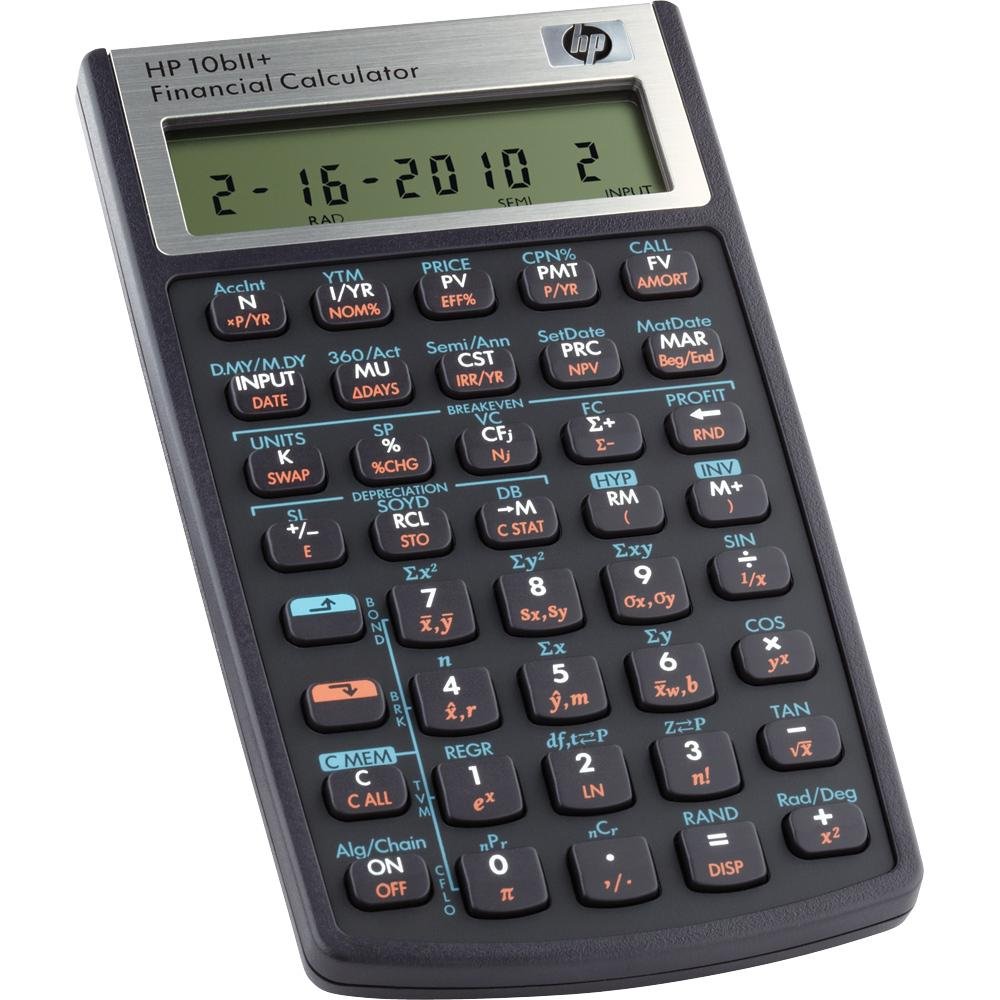 The HP 10bII Financial Calculator features over 100 built-in functions for business, finance, mathematics, and statistics, the 10BII is an ideal calculator for business students who want to get ahead. Calculate loan payments, interest rates, amortization, discounted cash-flow analyses, TVM (loans, savings, and leasing), and more. Statistical analysis is cumulative, and you can figure standard deviation, mean, and weighted mean in addition to forecasts and the correlation coefficient. Cash-flow analysis is register based and has 15 functions. The HP 10BII business calculator has an algebraic entry system and a logical and intuitive keyboard layout with easy-to-read labels. The LCD screen features up to 12 characters on one line of text. Small and sturdy, this calculator is easy to slip into your backpack or briefcase and bring to class or your workplace. HP offers a one-year warranty on the 10BII.
