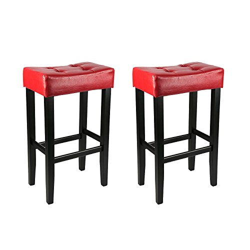 -. Title : LCH Bonded Leather Bar Stools, Backless Counter Stools with Wood Legs, Set of 2