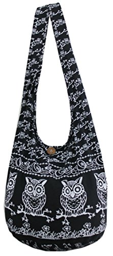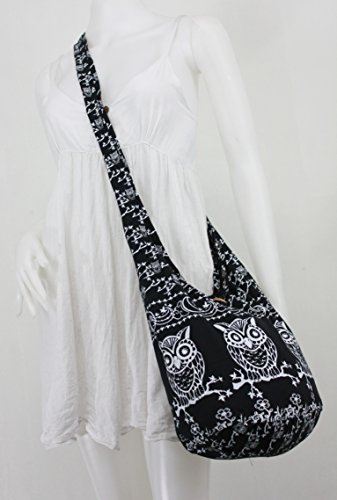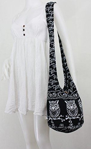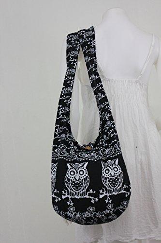 Black Owl Hippie Boho Vintage Sling Cross body Shoulder Messenger Bag OWLM1