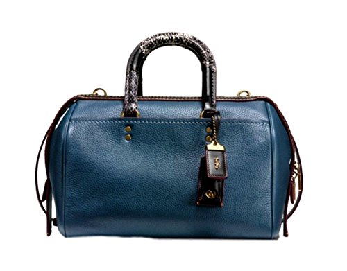 -. Brand : Coach -. Color : Dark Denim / Gold -. Department : womens -. EAN : 0889532748839 -. Feature : Done in glovetanned pebble leather with genuine snake handles, from the 1941 Collection / The zip closure opens to reveal an interior that's fully lined in suede with zip and French purse pockets / Genuine Python leather handles have an approximate drop of 4 1/2" and a long, adjustable and removable strap for shoulder or crossbody wear / Measures approximately: 11 1/2" (L) x 7 3/4" (H) x 6 1/2" (W) -. ProductGroup : Shoes -. ProductTypeName : HANDBAG -. Size : Large -. Title : COACH Glovetanned Pebble Leather Snakeskin Handle Rogue Satchel in Dark Denim / Old Brass 58690 -. UPC : 889532748839