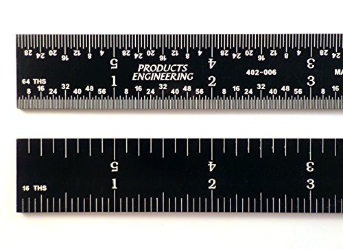 PEC Tools 12" 4R rigid black chrome, "high-contrast" machinist ruler with markings 1/8", 1/16", 1/32" and 1/64"