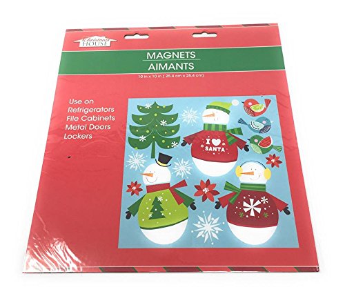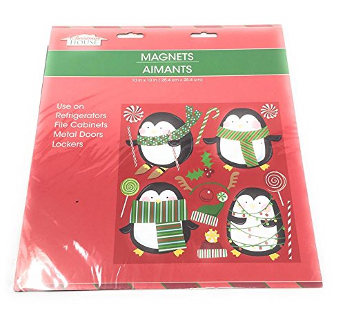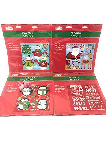 Assorted Winter Christmas Themed Refrigerator Magnets ~ Santa Claus, Reindeer, Snowman, Penguins, Jingle Bells, Merry Christmas, Happy Holidays, Let it Snow ~ Pack of 4