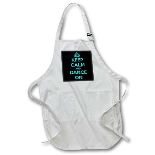 3dRose apr_163926_1 Keep Calm and Dance On. Black and Turquoise-Full Length White Apron with Pockets, 22 by 30-Inch