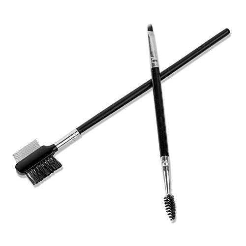 Eyelash Comb and Eyebrow Brush, Angled Eye Brow Brush with Spoolie, G2PLUS 2 PCS Professional Makeup Tools Set for Define Lash & Brow