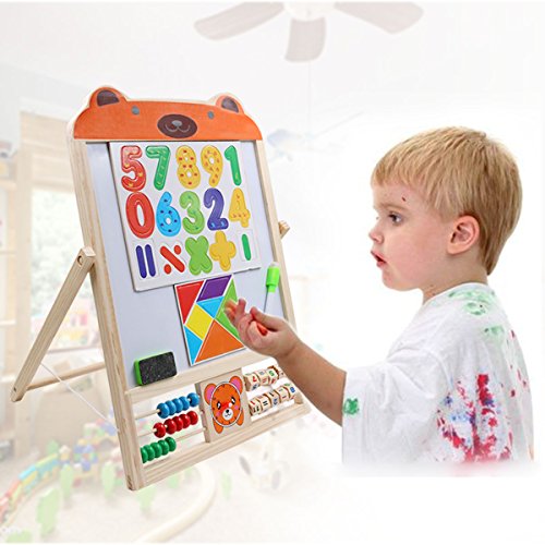 Double Sided Kids Drawing Board with Count beads and number blocks
