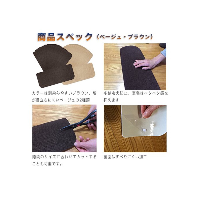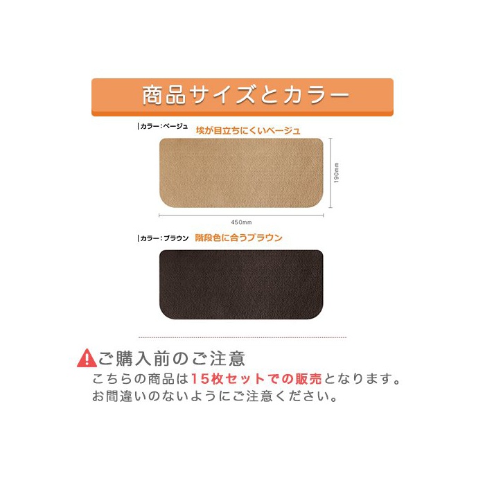 원본상품명: 階段吸着マット ベ?ジュ 滑り止め 滑りにくい ズレにくい 洗える階段マット ペットによる傷防止に 約45×19cm 15枚入