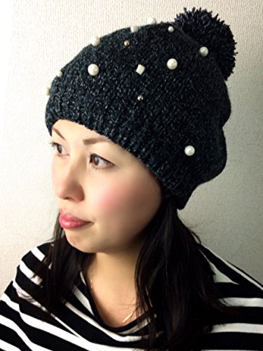 -. Title : ニット帽 帽子 かわいい 裏ボア 暖かい パール ガーリッシュ フリーサイズ アウトドア フェミニン キレカジ きれいめ ダークグレー