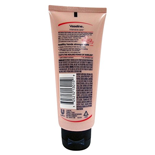 -. Binding : Health and Beauty -. Brand : Vaseline -. EAN : 0884809778366 -. Feature : Launched by the design house of Vaseline / This hand lotion is made with keratin and vitamin e / Formulated to bring moisture and softness back to your hands / Made with keratin and vitamin e / Formulated to bring moisture and softeness back to your hands / Learn more about skin at vaselinecom -. IsAdultProduct : 0 -. Label : Vaseline -. Manufacturer : Vaseline -. Model : 10305210130156 -. MPN : U-BB-2061 -. NumberOfItems : 3 -. PackageQuantity : 3 -. PartNumber : U-BB-2061 -. ProductGroup : Beauty -. ProductTypeName : BEAUTY -. PublicationDate : 2010-09-22 -. Publisher : Vaseline -. Size : 3 Ounces -. Studio : Vaseline -. Title : Vaseline Healthy Hands and Nails Lotion, 3 Ounce (Pack of 3) -. UPC : 305210130159