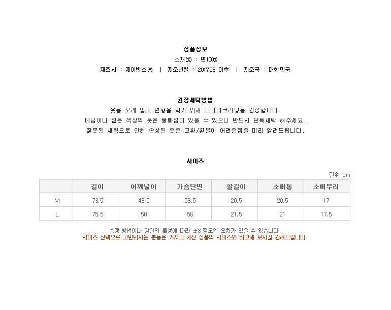 원단감을 살리고 변형률을 최소화하기 위해 20수 싱글원단을 덤블워싱 가공처리해서 제작했습니다.