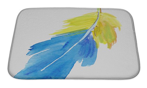 Gear New No Slip Microfiber Memory Foam Hand Drawn Watercolor Feather Bath Rug Mat, 24" X 17"