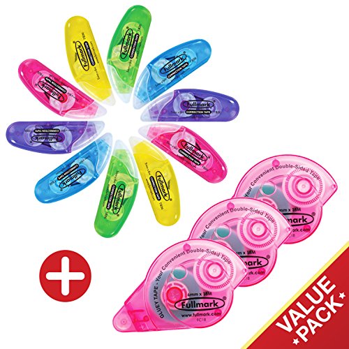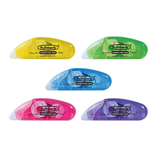 [BACK TO SCHOOL SPECIAL] Fullmark Correction Tape dispenses white tape that provides complete coverage for your correction needs. It is convenient and mess-free that enables immediate writing. The Fullmark correction tape is equipped with a swivel head and premium quality tape that is precise and break-proof. Its belt-driven technology prevents over-run problems. Each correction tape is 0.2 Inches X 19.7 Feet. Packed in bags of 10 with assorted colors with 3 double-sided glue rollers.
