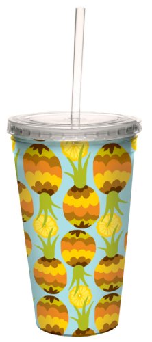 Tree-Free Greetings cc33506 Fun Pineapple Pattern by Carolyn Gavin Artful Traveler Double-Walled Cool Cup with Reusable Straw, 16-Ounce, Multicolored