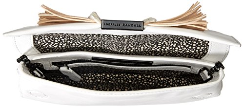 Fold-over clutch featuring patterned woven fabric with fringe at each side