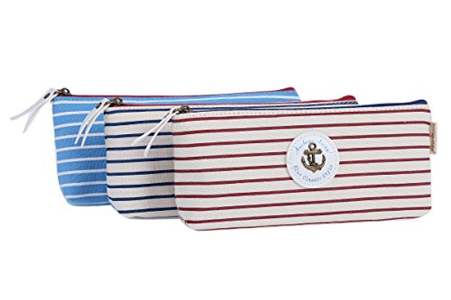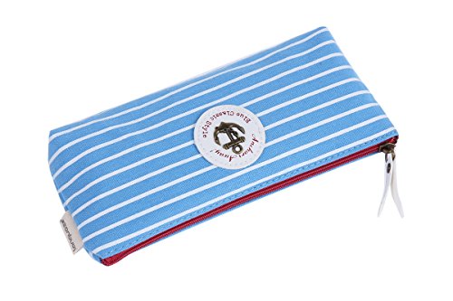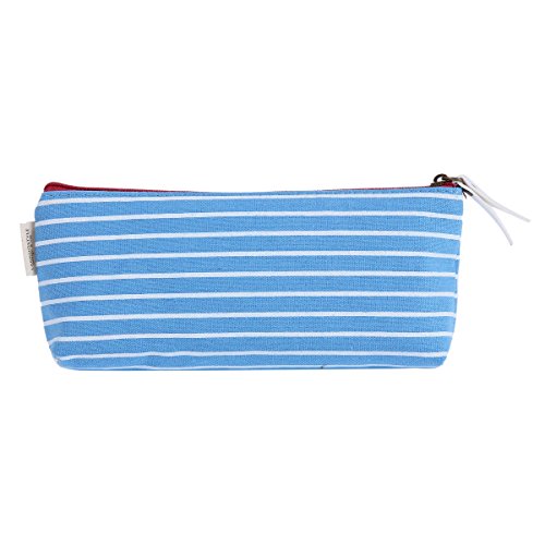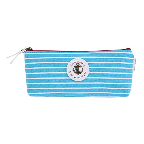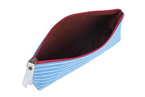 Damara Students Stripe Canvas Pen Pencil Bag Zipper Stationery Pouch,Light Blue