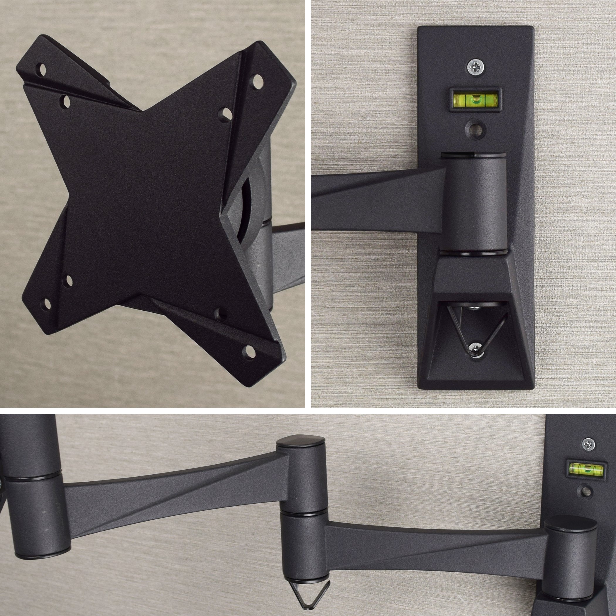 Since the horizontal position of the TV may be shifted depending on the angle of the arm, in that case please adjust the level every time by the rotation function of 360 degrees.
