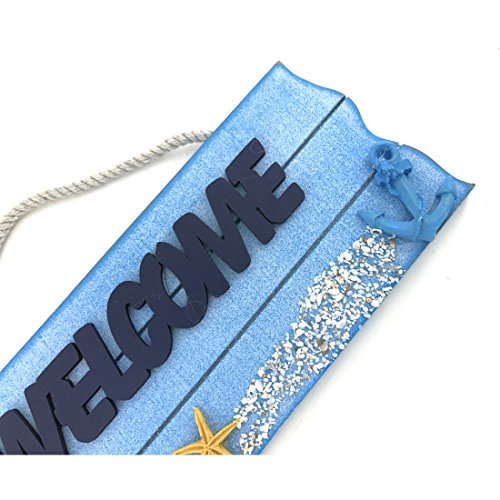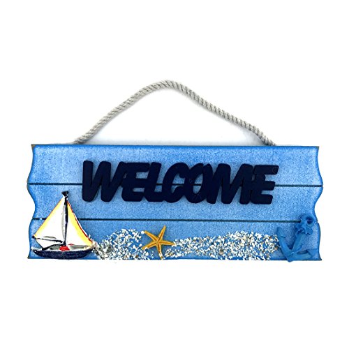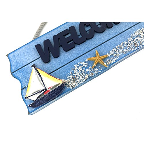 10"x3.8" Blue Nautical Wall and Door Hanging Welcome Sign (Sailboat)